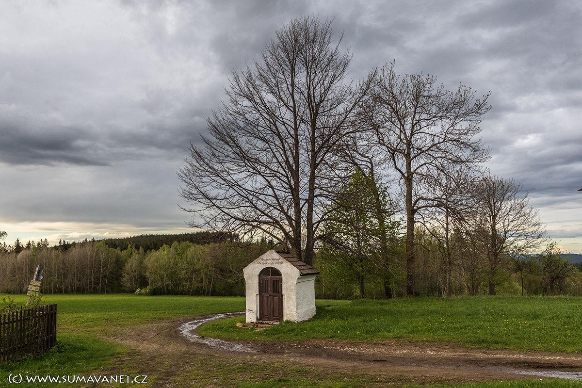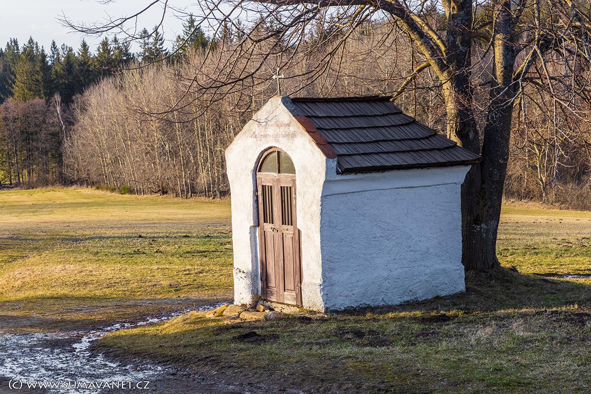 Před samotou stojí krásná šumavská kaplička.