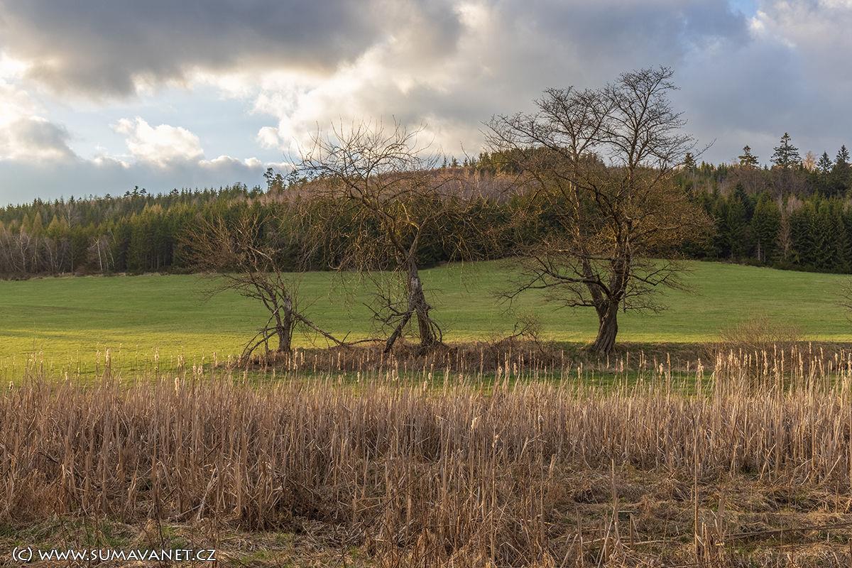 Po vystoupání na vršek k Novému Dvoru nebo na vrch nad Lukovištěm se nabídne krásný výhled ke Svatoboru a na Šumavu.